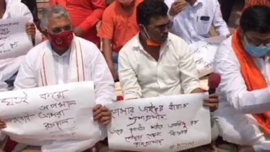 রক্তদান শিবিরের অনুমতি না মেলায় ‘সংকীর্ণ রাজনীতি’র অভিযোগে ধরনায় বিজেপি