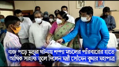 বাজ পড়ে মৃত্যুর ঘটনায় শম্পা মন্ডলের পরিবারের হাতে আর্থিক সাহায্য তুলে দিলেন মন্ত্রী সৌমেন কুমার মহাপাত্র